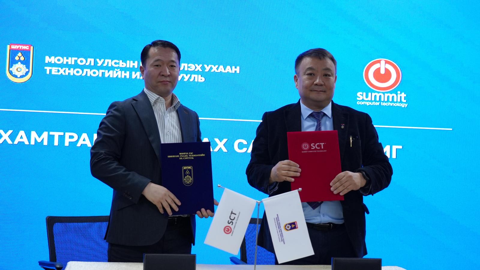 ШУТИС-ийн Мэдээлэл, холбооны технологийн сургуулийн захирал Л.Баяр-Эрдэнэ, “Саммит компьютер технологи” ХХК -ийн гүйцэтгэх захирал Ш.Энхболд нар 2026 оны 3 дугаар сарын 27-ны өдөр хамтран ажиллах санамж бичигт гарын үсэг зурлаа.